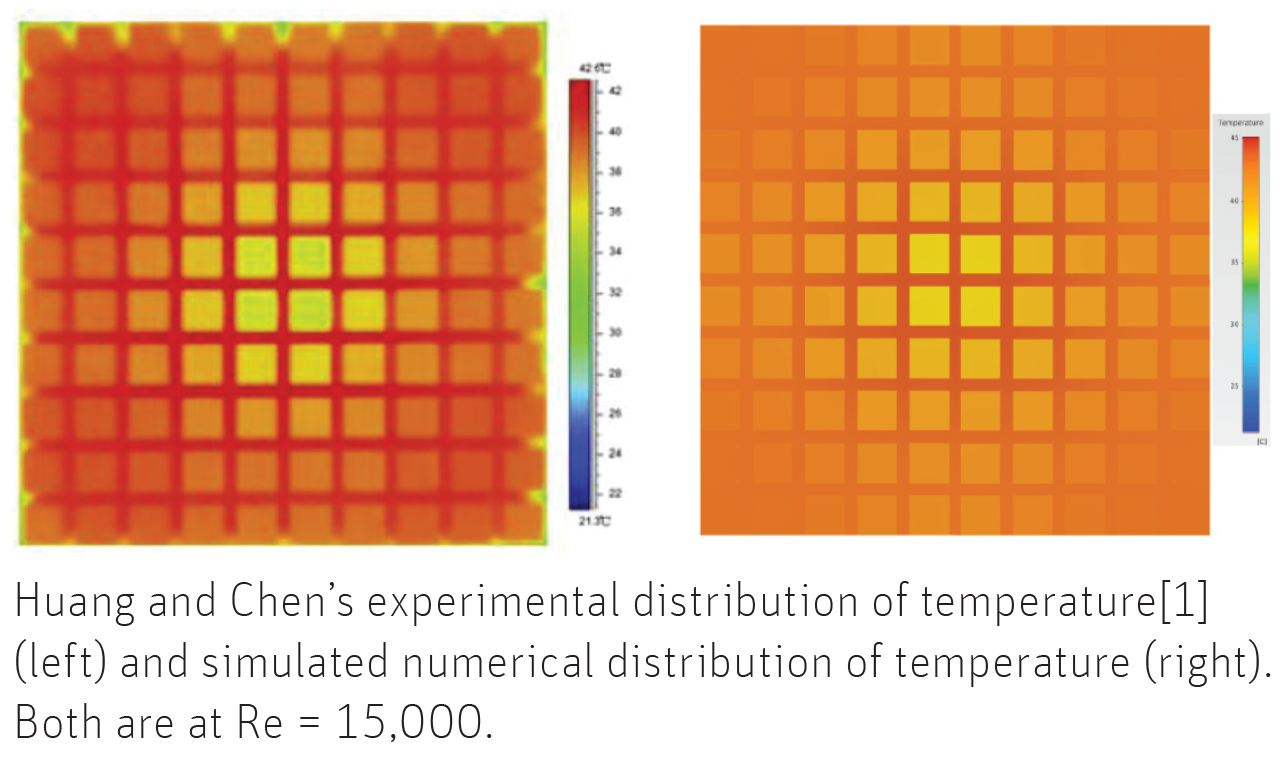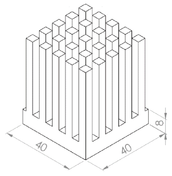 To begin, the paper "An impingement heat sink module design problem in determining simultaneously the optimal non-uniform fin widths and heights" by Huang and Chen was followed to create and validate a fluid-thermal model of a heat sink in ANSYS AIM. Once the model had been validated, a mesh study was conducted to check the sensitivity to the selected mesh. This allowed for a mesh size to be selected to optimize for the trade off between accuracy and computation time. It should be noted that the simulations were run on a quarter model of the heat sink to reduce the computation time. Symmetry wall conditions were used to ensure model accuracy.
