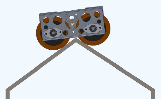 In terms of the geometry of the metal section, it had to be confirmed that the chassis would not interfere with the 5 different transitions that needed to happen. This meant that the ride height need to high enough to clear the triangular peak at the top, and the wheels needed to be peaking out of the chassis at the front and the back to be able to grip on and off the wall.