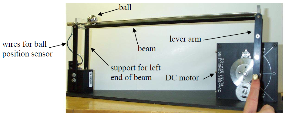 The setup provided to us included the ball and beam apparatus, which was controlled using the National Instrument CompactRIO (cRIO), which contains a FPGA, a real-time processor, an ADC, and a DC servo motor drive and amplifier. The controllers were written using GWiz (a LabView application) and sent to the cRIO over ethernet.