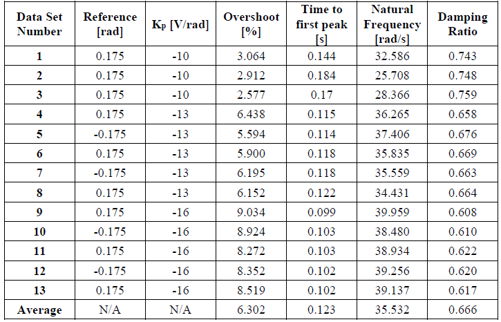 Having modeled and stabilized the motor plant, it was time to design the inner loop controller to meet the required specifications. This was done by first defining the "good" regions to place the additional poles in. Having defined the "good" region for the controller poles, many simulations were run to iteratively find poles that allowed the design requirements to be met. This was done by equating the actual characteristic polynomial with the desired characteristic polynomial, which allowed the continuous time controller to be determined. This controller was then discretized using a bi-linear discretization with a sampling period of 1.0 ms, which was determined by taking into a count that the sampling frequency should be atleast 25 times greater than the bandwidth of the system. Having the discretized controller, Simulink simulations were run to see if the overshoot and settling time criteria were being met. After several iterations, a controller was found that met the requirements in simulation. Having succeeded in the simulation, it was time to test on the actual plant. To ensure success, the simulation requirements had a safety factor of 1.25 on them.