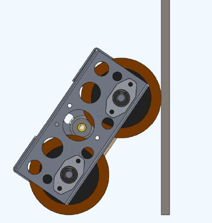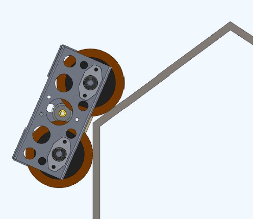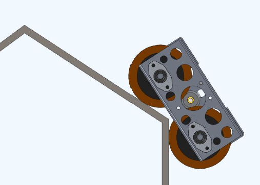 In terms of the geometry of the metal section, it had to be confirmed that the chassis would not interfere with the 5 different transitions that needed to happen. This meant that the ride height need to high enough to clear the triangular peak at the top, and the wheels needed to be peaking out of the chassis at the front and the back to be able to grip on and off the wall.